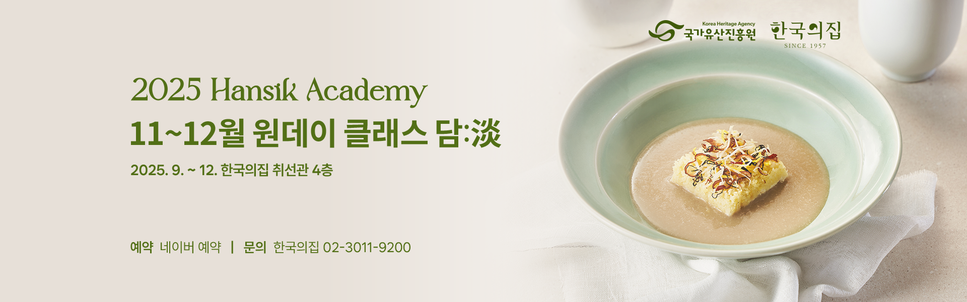 2025년 한국의집 한식 아카데미 원데이클래스 담:淡 강좌 안내 (10~11월)