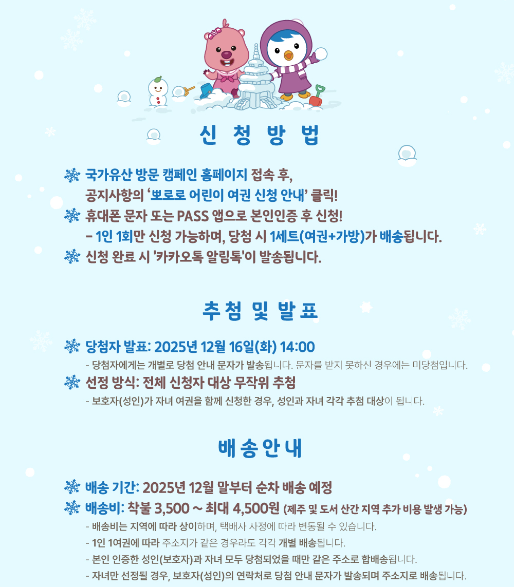 [국가유산 방문캠페인 x 뽀로로] 방캠 뽀로로 여권 특별 신청 안내 (12.2.~12.9.)