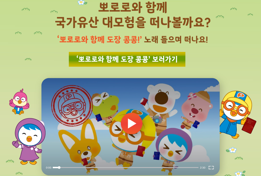 “뽀로로와 함께 국가유산 대모험“ 국가유산 노래 · 어린이용 방문자 여권 2일 공개