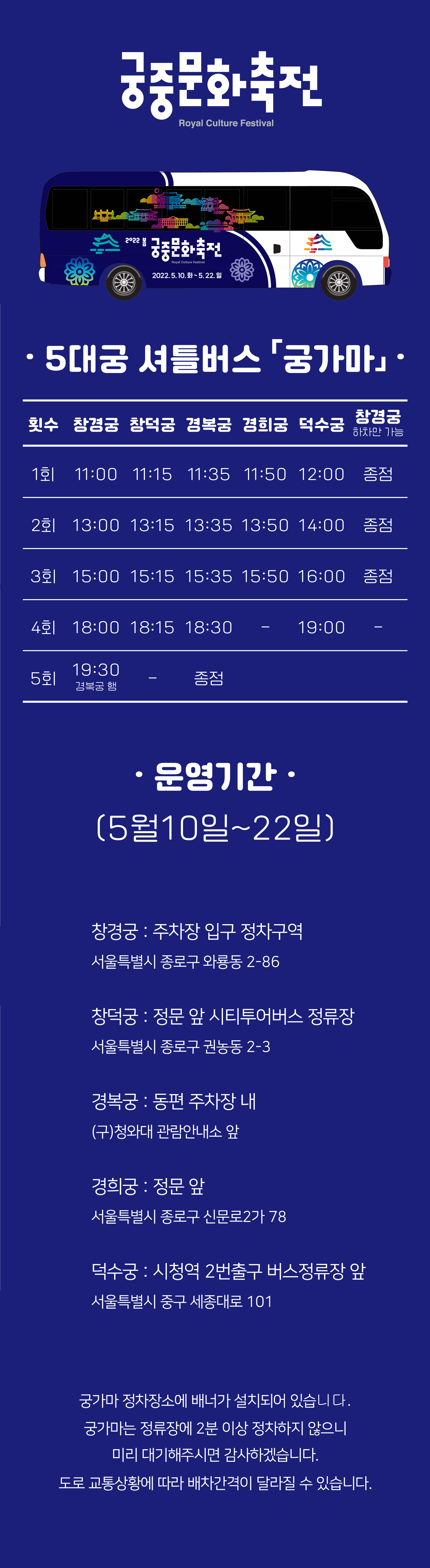 5대궁 셔틀버스 「궁가마」운영 안내