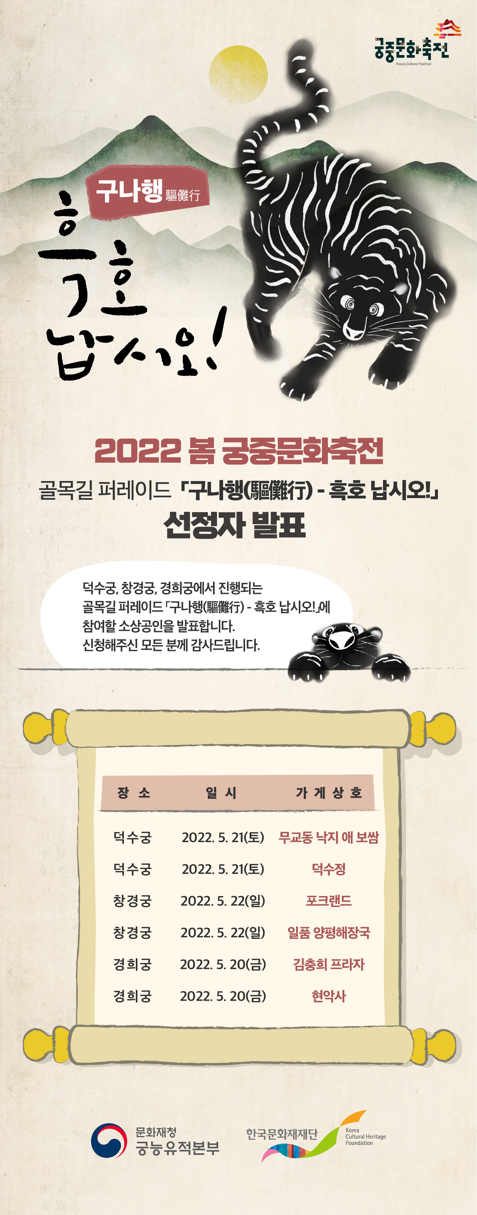 [발표] 골목길 퍼레이드「구나행(驅儺行)-흑호 납시오!」 지역상인 선정자 발표(덕수궁, 창경궁, 경희궁)