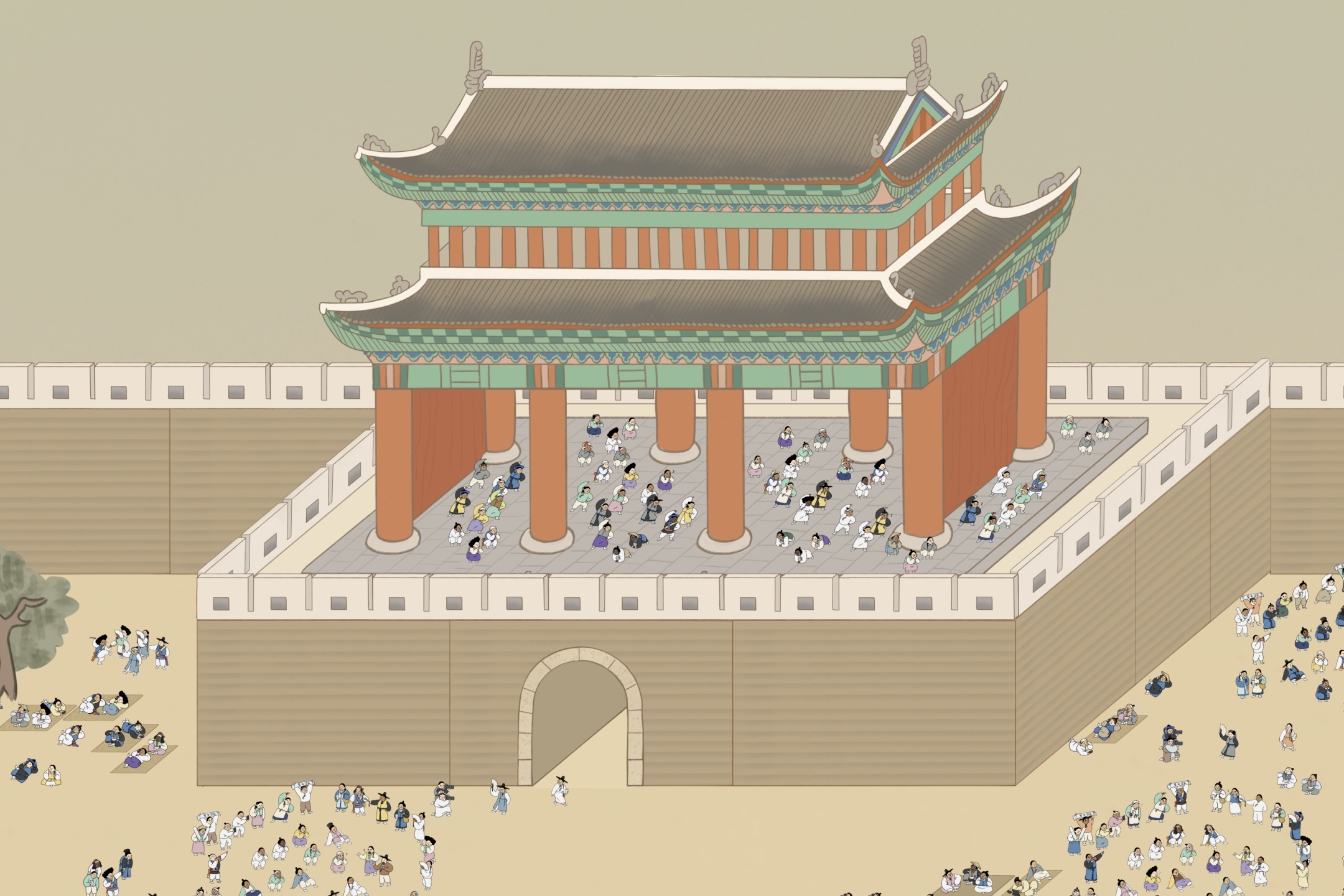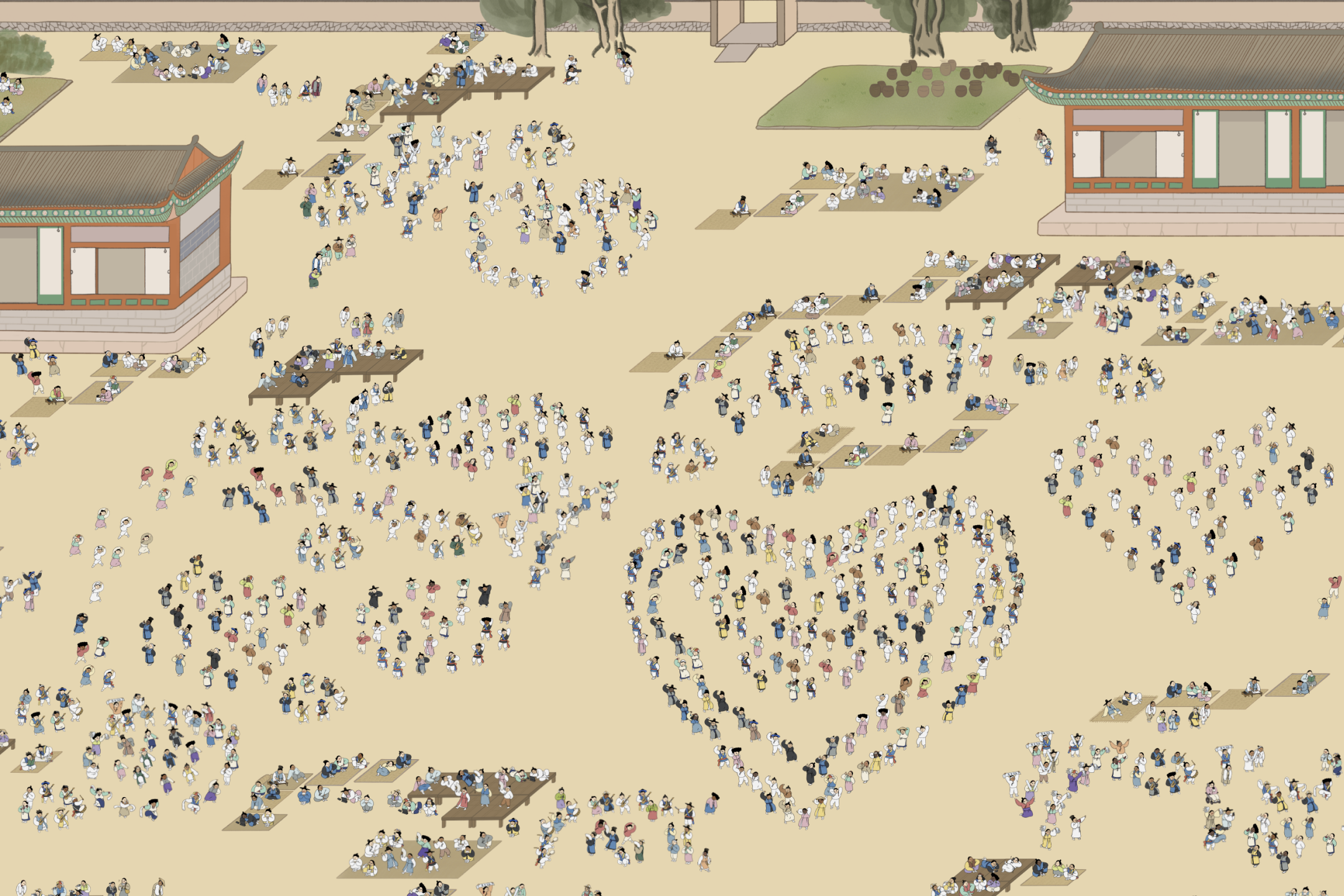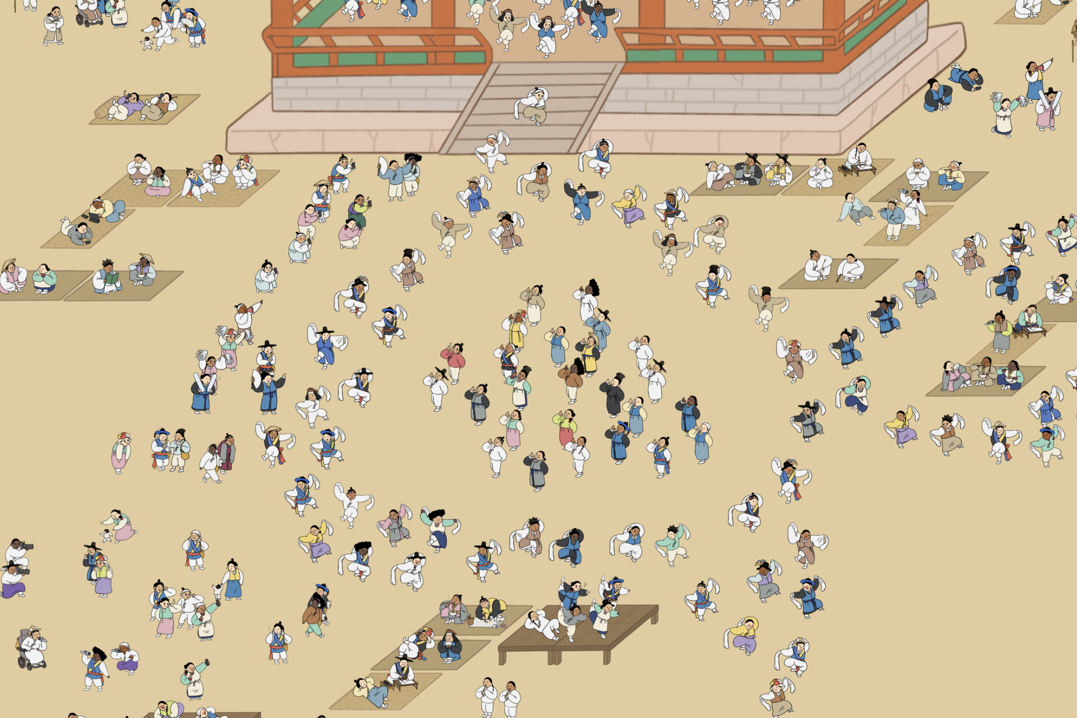 올해 참여자들의 캐릭터를 모두 모아 하나의 풍속도 작품으로 완성한