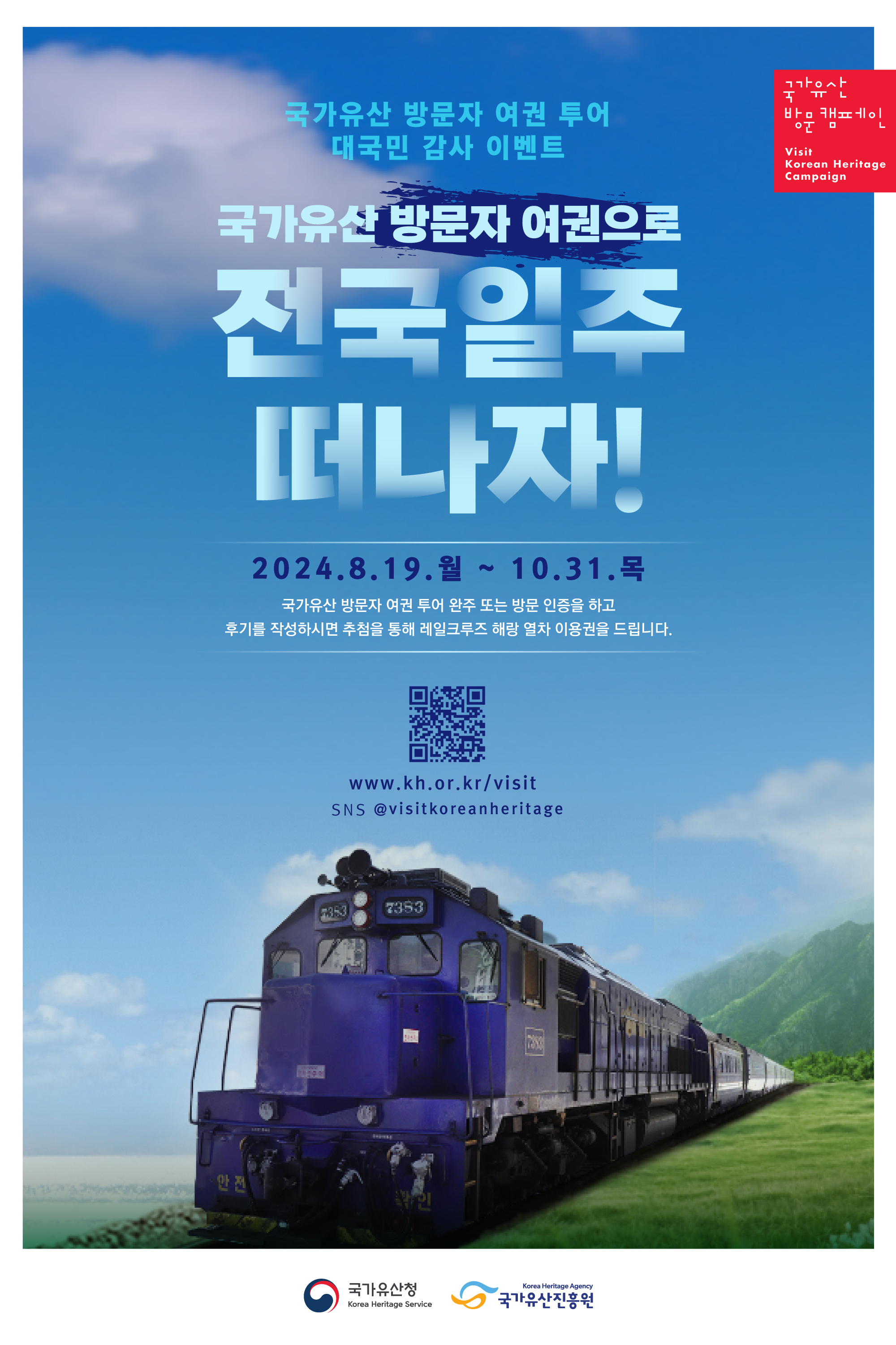 국가유산청(청장 최응천)과 국가유산진흥원(원장 최영창)은 오는 19일부터 10월 31일까지 <국가유산 방문자 여권 투어 감사 이벤트(이하 ‘방문자 여권 투어 이벤트’)>를 진행한다.