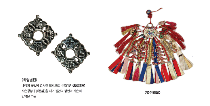 이 중에서 감(監), 홍(紅), 황(黃)의 3색줄이 달린 열쇠패는 시집가는 신부의 필수 혼수품과 내방의 장식용으로 애용되기도 하였다. 이처럼 조선시대의 별전은 단순한 화폐로서의 가치보다 사회풍속의 한 유산으로서 당시의 사회상을 알수 있는 중요한 가치를 지니고 있으며 소박하면서도 토속적인 문양과 모양으로 새겨진 길상의 의미는 우리나라 고유의 아름다움과 해학을 느낄 수 있게 한다. 별전괴불은 별전과 괴불 등의 자수 장식품들을 꿰어 만든 열쇄패로 중요민속자료 제47호이다. 별전괴불은 정교하고 아름다운 자수 솜씨와 자수에 사용된 금실 등으로 보아 궁중에서 사용되어진 것으로 보인다. 그 형태는 용두문 고리에 달린 주머니형의 동판에 별전, 괴불 등 모두 19줄의 장식이 달려 있는데 그중 3줄은 용두문 고리에 달려 있다.