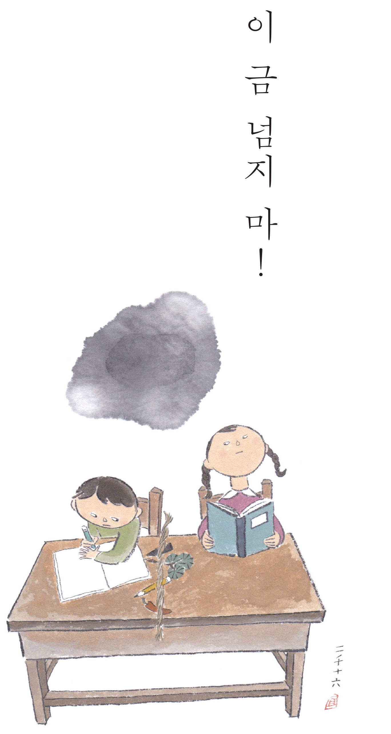 요즘은 1인용 책상을 붙여서 두 사람이 나란히 앉지만, 예전에는 2인용 긴 책상을 짝꿍과 함께 나눠 쓰는 것이 흔한 풍경이었다. 2인용 책상이기에 사용할 수 있는 면적이 나름대로 충분했지만 그래도 명시적인 표시 같은 것이 없었기에 종종 아이들은 제 임의대로 책상 위에 금을 그어 영역을 표시했다. 그와 함께 “이 금 넘지 마. 넘으면 죽는다(?)”는 귀여운 협박이 따라오곤 했다. 이처럼 금을 긋는다는 것, 선을 긋는 것은 외부에서 들어오지 못하도록 경계를 설정하는 의미를 지닌다. 우리 전통문화에서도 이렇게 금을 그어 경계를 설정하는 경우를 볼 수 있는데 대표적인 것이 금줄이다.