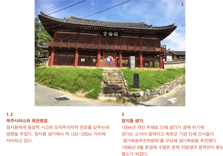 불우하고 궁핍한 시절을 보냈던 정지용은 1919년 12월 <서광> 창간호에 자전적 이야기인 소설 「삼인」을 초도작으로 발표한다. 「삼인」에 등장하는 세조, 최, 이 친구는 여름방학을 맞아 고향인 옥천역에 도착한다.