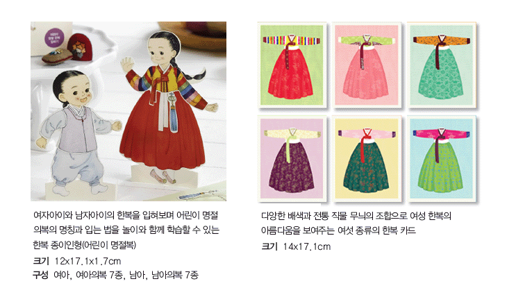새 마음으로 새해를 맞이하는 설날, 소중한 가족과 친지에게 우리의 멋스러움이 깃든 한복 종이인형과 한복 카드에 소중한 마음을 담아 전해보는 것은 어떨까.